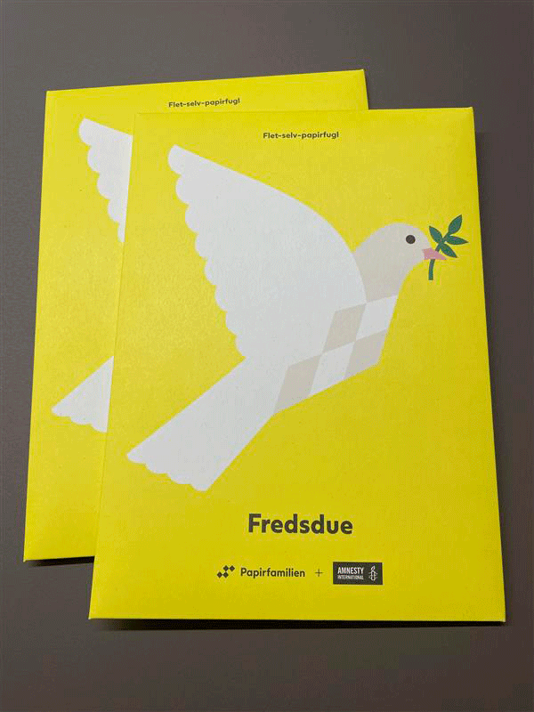 For en donation på min. 200kr. får du to fredsduer 🕊 🕊